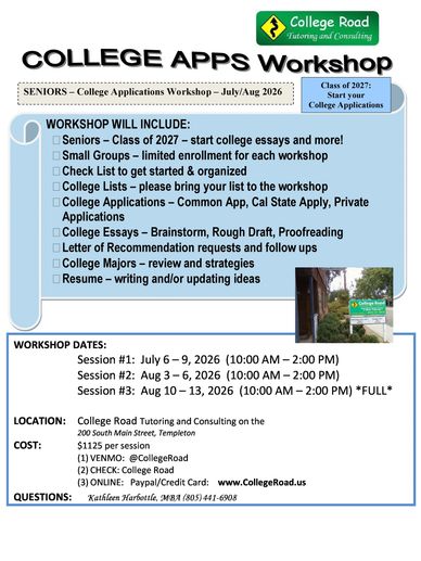 COLLEGE APPS WORKSHOPS for Class of 2027 Seniors - please text